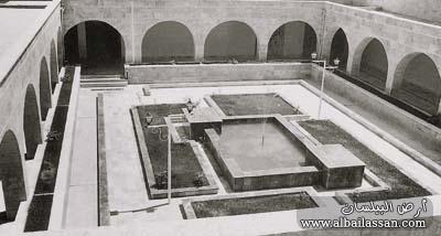 وأمامه ساحة مرصوفة بأحجار صغيرة ملونة ذات رسم هندسي بديع